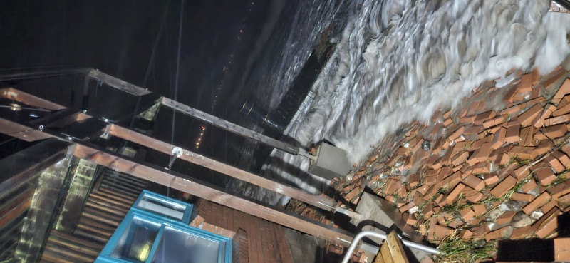 Der Bereich vor der Wache ist an den großen Steinen weit ausgespült. Die Niedergänge sind ebenfalls unterspült. Sicherheitshalber haben wir mit Sandsäcken die Aussentüren abgeschlossen.